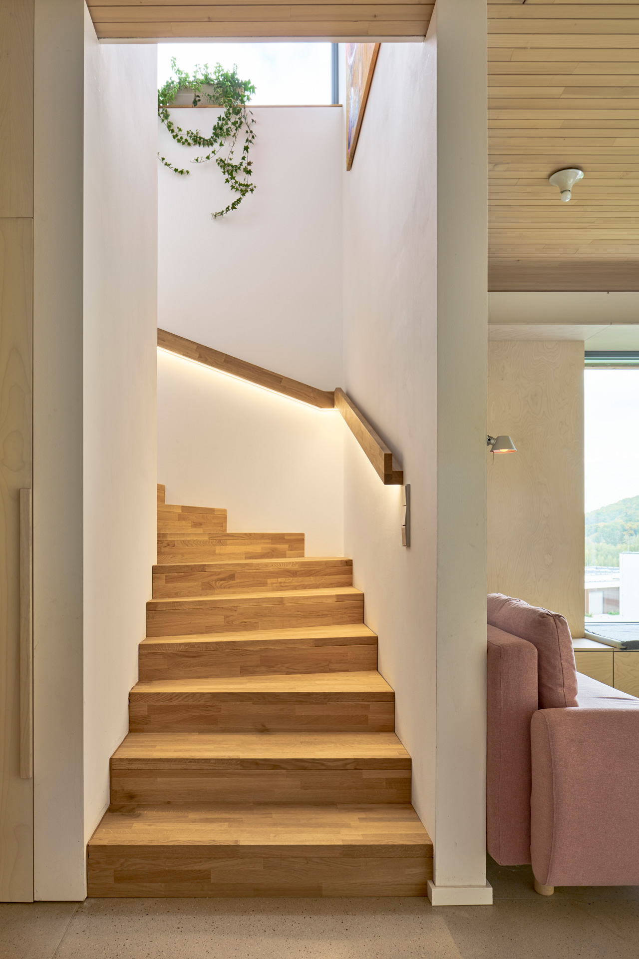 Celý interiér je postavený na jednoduchých principech – kvalitní materiály, promyšlené detaily, práce se světlem a barvou – a nabízí příjemné, funkční a osobité bydlení, které respektuje místo i životní styl jeho obyvatel.